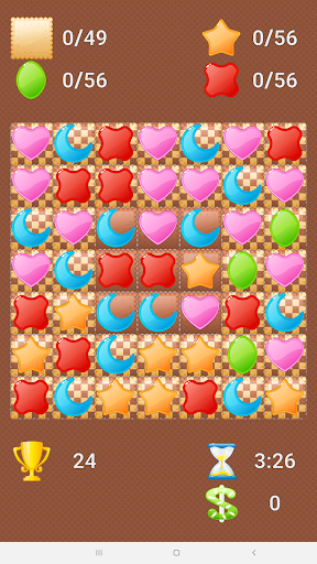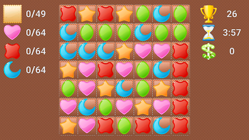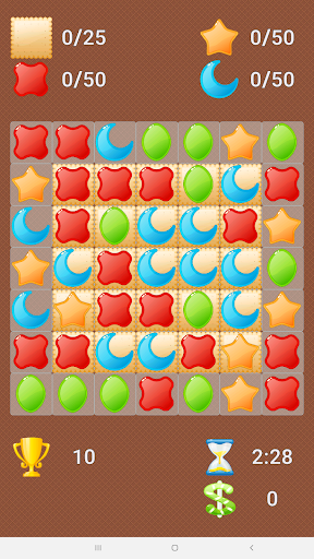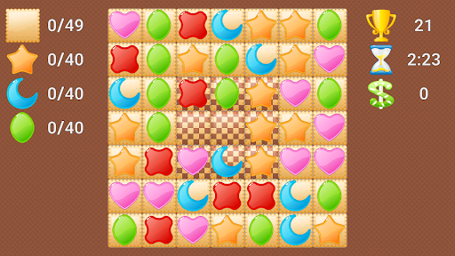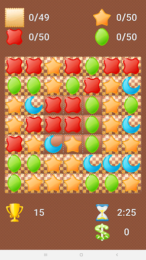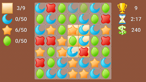 You may set as horizontal as vertical chain. Minimal length of the chain is three. The chain will removed candies and background cookies. So task of the game is remove all cookies and collect candies to get bonus stars.