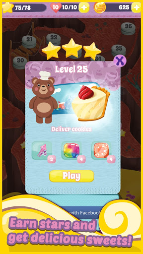 As you increase your score, you will get stars, and these will get new delicious sweets in each level.