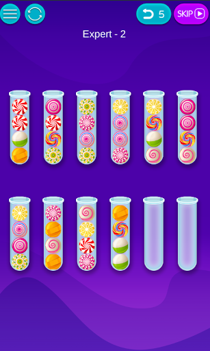 Candy Sort Puzzle is a fun and addictive puzzle game! Try to sort the colored balls in the tubes until all balls with the same color stay in the same tube. A challenging yet relaxing game to exercise your brain!