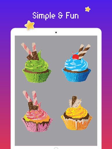 Cupcake pixel art Sandbox have not require any coloring skills, this candy color by number game is very easy to color by number.