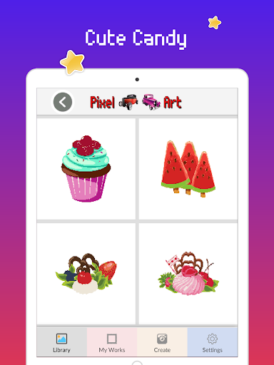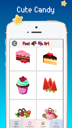 This " Candy color by number : Pixel art cupcake " is the best free candy color by number for adults and family on Android. Every fan club of candy will love this cool pixel art cupcake coloring game.