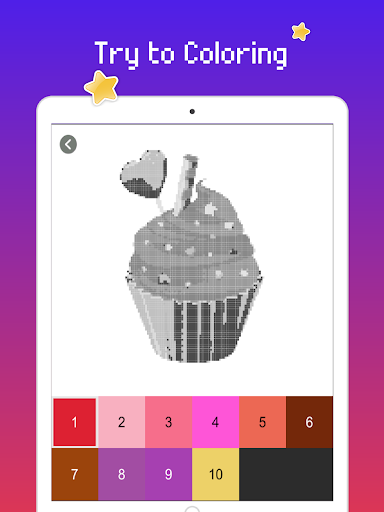 Download now and enjoy playing Candy color by number : Pixel art cupcake game.
