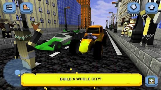 Crafting and building for boys and girls. Car racing, top speed, traffic jam and blocky exploration of the sandbox world