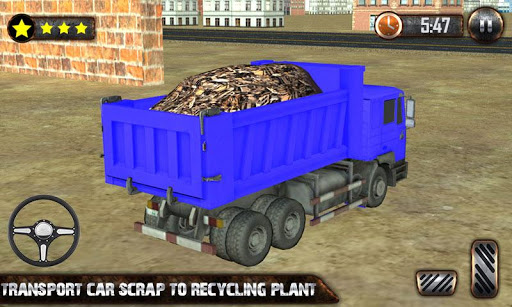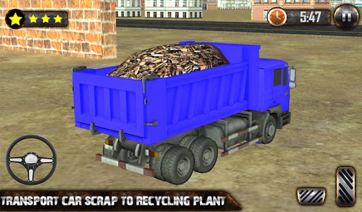 Time to dispose old cars with road rollers and demolishing cranes is over. Collect all scrap cars from different locations, load them in truck to get your junk yard. Drive wrecked car transporter truck and reach timely. The process of crushing old cars is quite fascinating with majestic crane operator and manual truck driving. Operate magnetic grapple crane to lift cars and drop them in shredder machine. Look the car getting down into machine and crushed into pieces. Turn on crusher machine and watch rusty cars getting demolished and crushed into scrap bits. Crushed pieces are getting out over conveyor belt. Pile up all the garbage in dumper truck and dump it to the recycling factory.