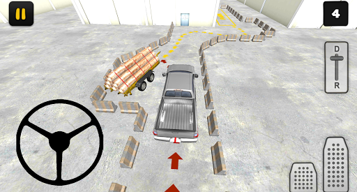 All trucks are busy elsewhere so you need to haul the steel with your car. You are responsible for the delivery of the steel loaded onto the trailer. Driving with a car and trailer loaded with steel require special driving skills. You need to make wide turns to avoid hitting obstacles for example. In 15 levels you'll face realistic situations where you have to park your car and trailer loaded with steel. You'll need to drive reverse for example. To finish a level you first have to attach the trailer, to do that follow the red arrows. After you've attached the trailer you have to park your car and trailer, to do that follow the yellow arrows.