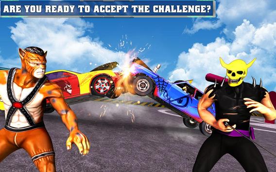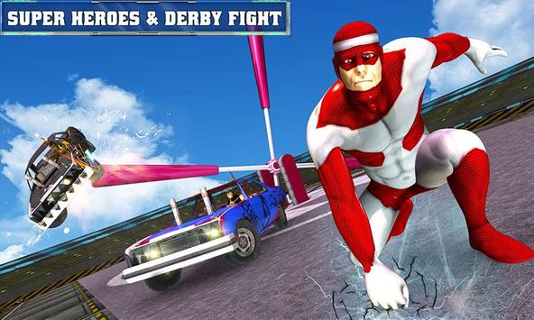 Indulge in this unique and hybrid superhero-derby game! Battle other superheros, and at the same time, smash and crash your opponents with your sportscar! Select your favorite superheros like Tiger Man or Skullhead, paired with their very own unique vehicle. Go head-to-head with other superheroes in the arena; use your fighting and martial arts skills as well as your superpowers. Each hero comes equipped with their own set of powers! Select moves like Super Punch or Kick. Then, hop into your derby and enter into the car crash racing battle. Race around the track! The goal here is to cause as much destruction and demolition as possible! SMASH and CRASH!