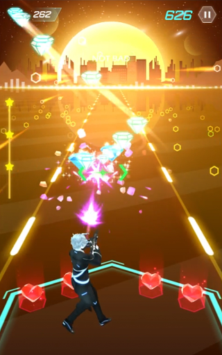 3. Feel the beat 🤟. Swipe left and right to shoot all the bombs and frag as they come closer. Do not Tap! This is not a Tap Tap music game.