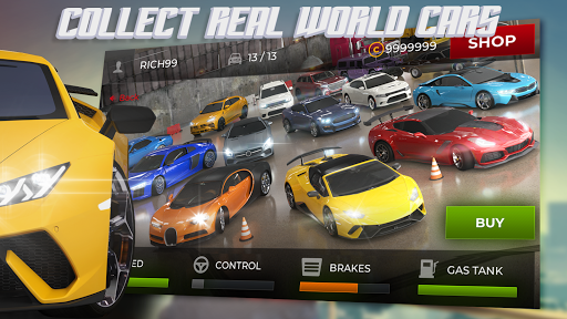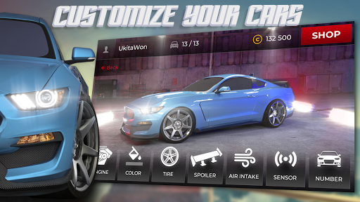 Customize your dream car in your garage. Improve with new rims, roof scoops and spoilers. More than 15 different super cars are waiting for you to add in your garage.