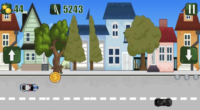 Speed up chasing robbers and collect silver and gold money on road.