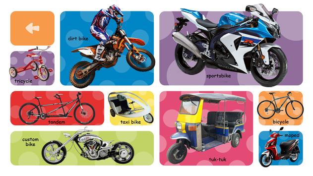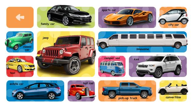 Listen, learn and repeat sounds of different vehicles – just tap the proper image!
