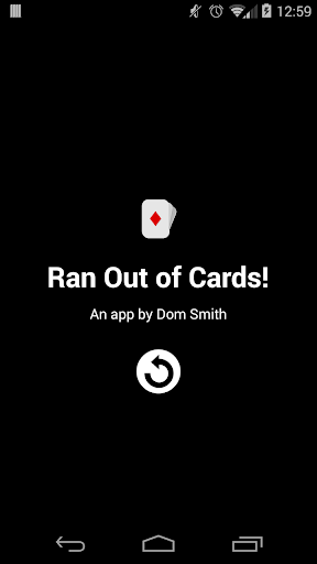 Great app! Just what i've been looking for. It's easy to use and I like the graphics! One thing, if I may suggest, please add an option to restart the deck even before the cards run out. Maybe long tap on the current card or an itsy bitsy tiny button at the corner of the screen or something. Thank you!