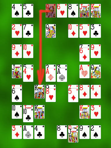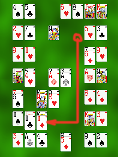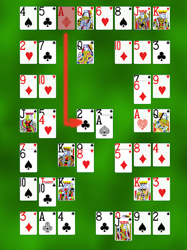Push one card first, then tap another card. If these two cards are connected on a same line, the 1st card will be automatically moved to the 2nd card.