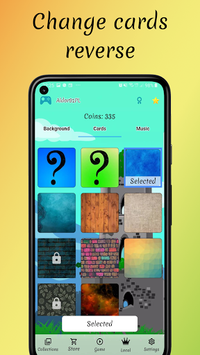 Some backgrounds and graphics on the reverse of the card are available from the beginning, some need to be unlocked. You can do it by collecting coins by winning the game. Match cards, make fewer errors and have a better time for more coins.