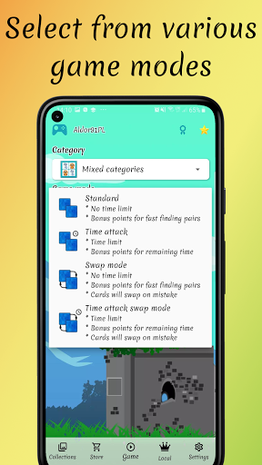 One is standard where you have unlimited time but by faster matching pairs you get more points. It's ideal for casual playing when you want to relax a bit or just train Your memory.