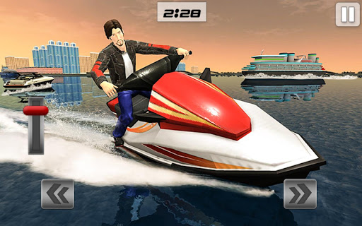 Enjoying playing the newest boat simulator game and sail speedboat and water scooter over the Mediterranean Sea waves.