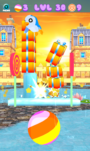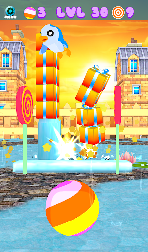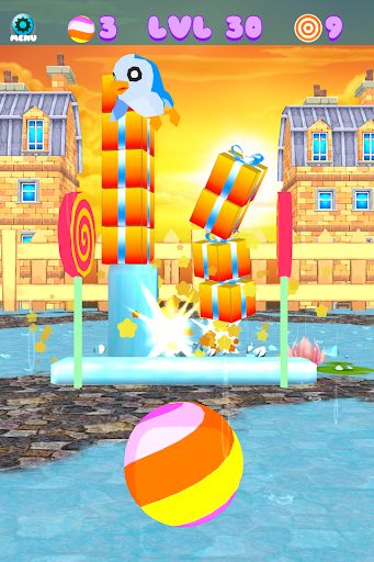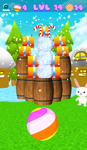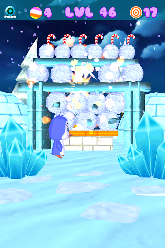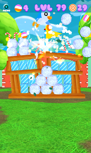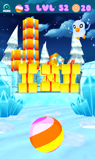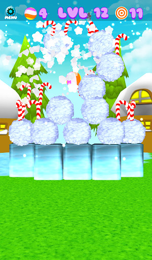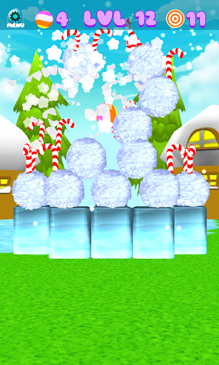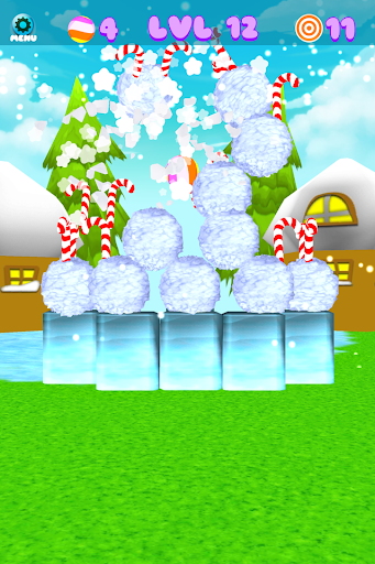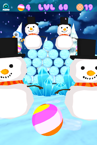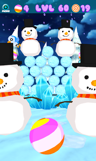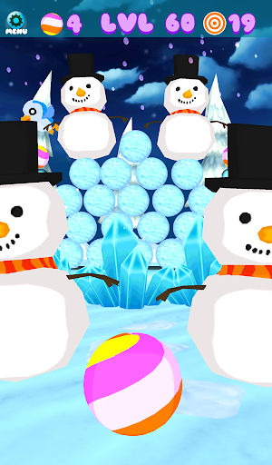 The targets are arranged in various formations and remember that the player have a limited number of ball to throw, a lot less than the number of targets. Plan, think ahead and strategize how best to destroy the stacks and/or formation in batch. Hit ice cubes and ice panels to break them. Sometimes it's best to try to knockdown as much targets as possible. But sometimes a well aimed shoot can produce chain reactions, causing more objects (such as targets on top of one another) to fall. For example, in the situation where the targets stand above ice, it may be better to target the ice and break them so that the target falls, rather than knocking down the targets, which may take more hits and throws.