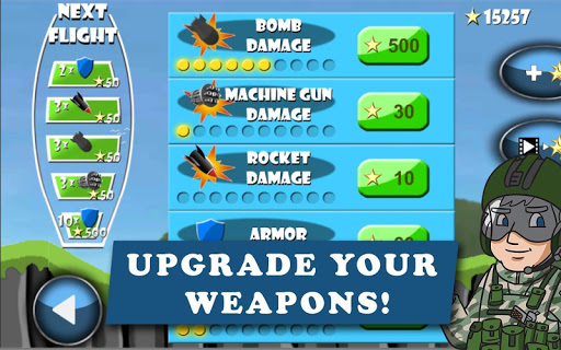 Collect power-ups to boost your aircraft in game. Upgrade the aircraft between each level to increase its awesomeness!