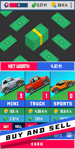 Play Cars Tycoon: Idle Clicker Game and be a Billionaire. Import a variety of awesome cars and sell it to a variety of customers to capture as much clients as possible. Run and expand your empire with strategy and earn loads of cash. Be Rich!