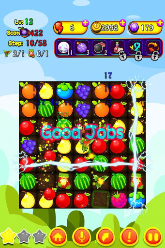 Gentle moving your finger in the screen, enjoy the fun of eliminating fruits but do not need more thinking, it is a really relaxing.