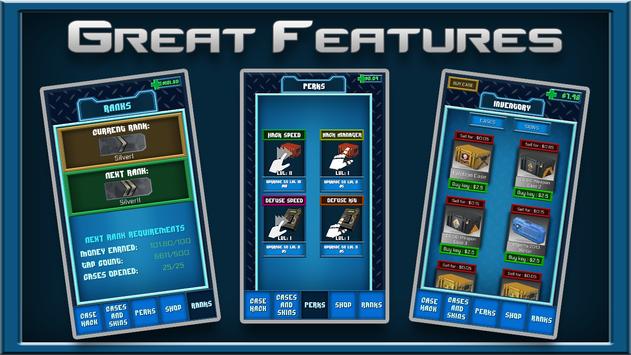 Click away to earn money and open cases. This is the best CSGO style mini game that combines the case opening simulator and a clicker style game. Enjoy the high quality graphics and smooth gameplay. Enjoy over a dozen real CSGO cases and hundreds of gun skins.