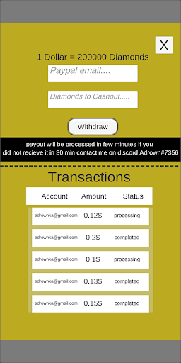 You can Earn Diamonds by spinning the lucky wheel or completing offers then you can convert diamonds to dollars and get paid right now!