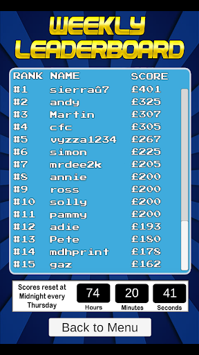 leader boards! There is a weekly leader board and an all-time leader board!