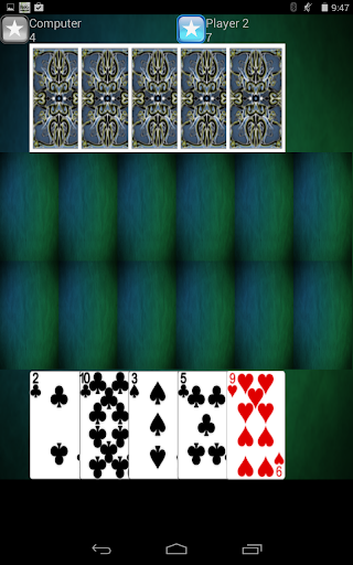 Casino is a fun to play, exciting, quick paced fishing card game where you play against the computer to build, stack and capture mates. Capture the cards from the center by matching or building. Earn points by having the most cards, the most spades, and for every Ace, the 10 of Diamonds, and the 2 of Spades. The first hand deals 6 cards and every hand thereafter deals only 4.