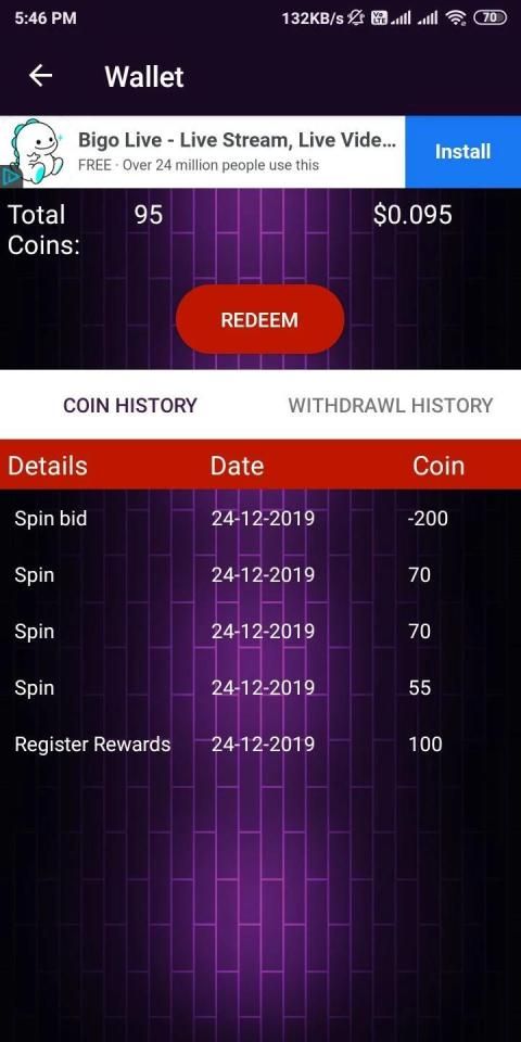 • Daily Complete tasks to earn rewards points in Spin to coin. The tasks vary and can be watching videos, Daily check in and many more.