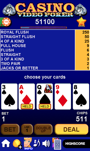 Casino Video Poker use the rule of popular Jacks or better. Great video arcade graphic and a theme of real casino video poker / slots machines.