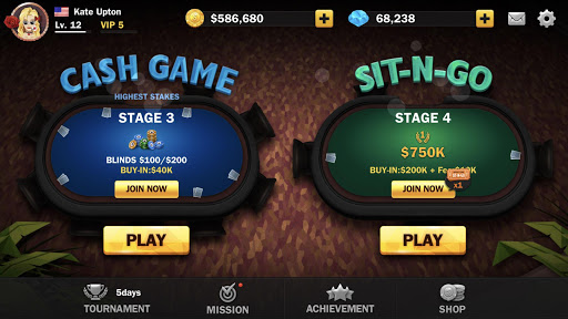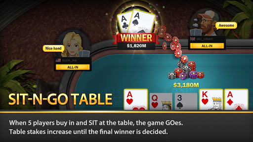 • Texas Hold'em Poker: Cash Game and Sit-N-Go tables