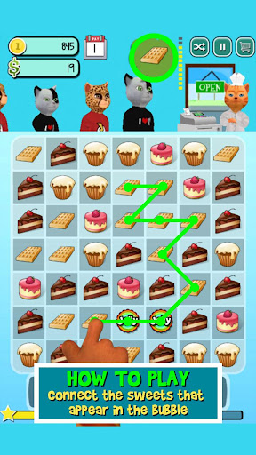 You will need to connect at least 3 sweets to get an order done. To get more points or activate a combo you need to connect as many sweets as possible and serve them to his sometimes crazy customers.