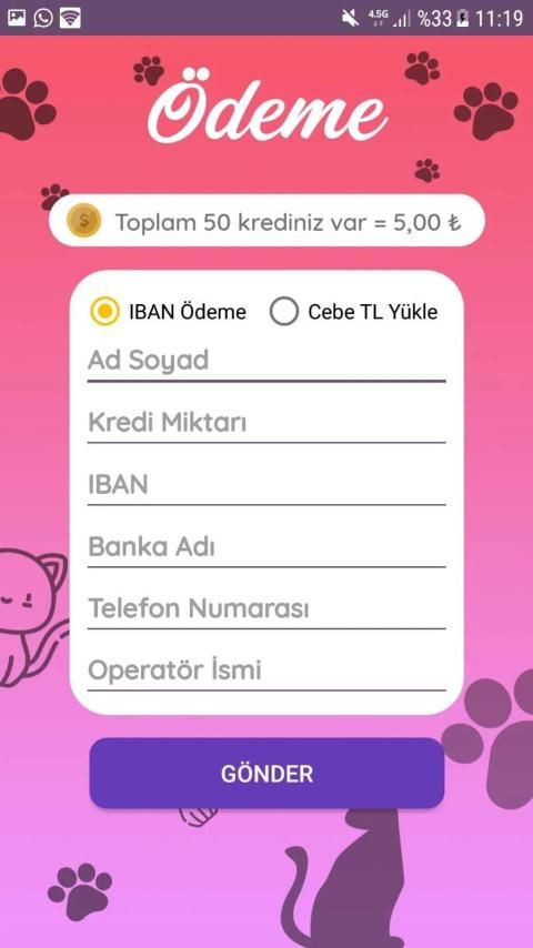 - Kredi Puanı; Kediyi besledikçe gelen,paraları alman için gerekecek.