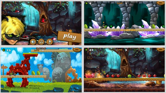 with obstacles of ferocious animals and crocodiles and dragons and traps You should help the black cat noir to overcome all these obstacles. Collect coins and cut the miraculous to get to the ladybug and save them.