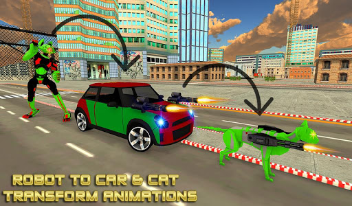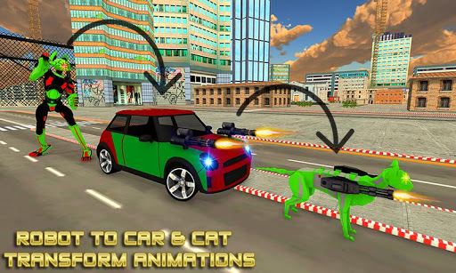 Transforming Car Robot 3d fighting game offer you to drive the city cat robots speed car robot shooting games . You can transform your sports car Mini Cooper or fighting cat robot hero who is always ready to jump into mech robot battle transformation game. Transform monster cat robot transformation car to robot car driver for robots grand war. Enjoy the Wild Cat Robot Car Transformation Robot Hero game to drive the Futuristic Grand Car Shooting Robots and avoid survive into mega robotic cat transformation and reach the battle robot spot as early as you can. Prove that you are grand superhero cat robot city car fighter of the futuristic grand city war game. Real futuristic robot flying car transformation games will give you the US cat warrior robot simulator fight experience.So Get Ready for Playing Best animal robot game-Real kitten robot Car Battle Game.