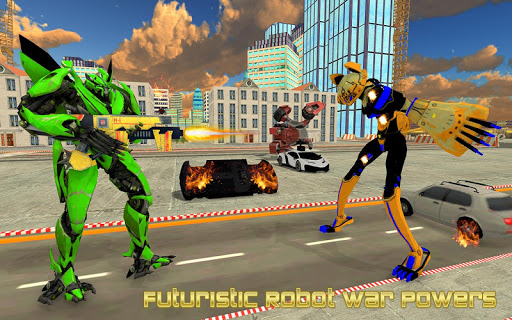 Play Super cat robot car Battle Game. Real crazy robot games: Real Police USA Robot cat hero to transform into wild cat robot car like real robot super car transform, and fight for the survival of angry cat robot 3D fighting and car robot street war in the futuristic War city which transform into mega robot war of monster robots which is adventurous and challenging. This police robot Cat Game: transformation car robot war are multi transforming robotic war where you can use futuristic robot war powers and robot attacks. This animal robot cat transformation game is Combo of Police Cat and Robot Car Battle and it is a special city rampage robot transformation simulator where you will beat your rivals with animal robot war abilities to get victory in cat transform robot city attack: car robot game.