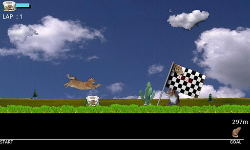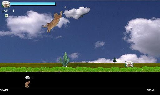 Cat runner CHIPThe cat advances and running advances singlemindedly jumping.Jump touch Height is adjusted at the pushed time.Two step jump Touch in the upper part while jumping.It recovers with the canned cat food.Red jumping up panelblue durable obstacles up panelGreen speed up paneScreen size 800x480