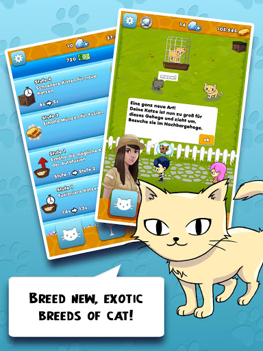 Create cute cats in the colorful animal app Cat Safari. Mysterious crates seem to appear regularly on a large abandoned field – and inside, each one holds an adorable kitten! Combining two of the same kind of cat yields something completely new – step by step, you'll be able to breed unique new breeds of cats. Experience the unique cat game and initiate a cat evolution of your very own!