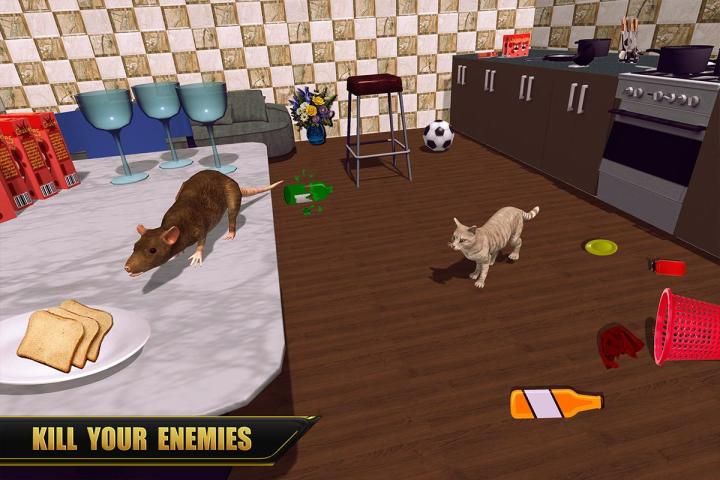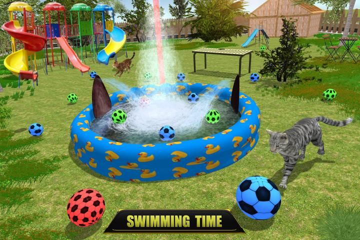 Cat Simulator Family: Cute Stray Kitten Life is truly based on the story of a stray cat having battles with mouse and other wild animals. Experience the life of a cute stray cat and stay alive in the big city and animal farms for unlimited fun. Feel like a cute kitten, but beware of the enemies like mice, hens, and crazy dogs in all cat games. Snatch the cookies inside the house and keep running to save your life while playing cat simulator. Explore the house to find your food and to kill the chicks, hens, and rats. Build a new home and grow your cat family and sweet baby cats in the form of a new cat breed. Play with the toys, footballs, and dive into the swimming pool and enjoy swimming. Challenge yourself in this cat simulator and complete all magical quests. Destroy books, glasses, laptops, and kitchen accessories to earn rewards.