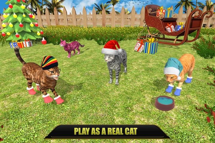 for all cat games fans. If you love the family pets, then get ready to play as a cute cat inside the beautiful house and in the town for some kitty adventures. Pick your favorite cat breed to start the exciting quests in this animal simulator. Be a dominant stray kitten to smash the kitchen objects, mess the food items, hit footballs, and gift packs to earn coins. Your task is to destroy everything in your way to complete the interesting yet challenge cat missions. Collect the food and Christmas gifts to earn coins and to buy favorite new cats breed. Buy new accessories like Christmas hats and socks to upgrade your kitty cat. Hunt the stray mice, fight with the angry dogs, and other animals to survive in the big realistic city to improve your hunting skills. Cat family simulator is unique among