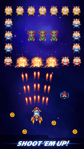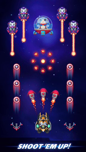 Cat Squadron - Galaxy Defender is a vertical shoot em’ up space shooter game. You can choose 1 member of the Cat Squadron and control him to shoot down the enemies. You will only need to use one finger to move the spaceship around, dodge the enemies’s attack and the spaceship will fire automatically with unlimited ammo.