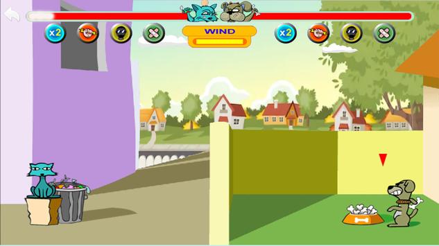 Cat vs Dog legend is an entertaining game in which these two characters, a dog and a cat, they will face each other in a battle throwing things at each other. To throw the objects you will have to maintain the finger on top of your character. Take into account the wind strength.