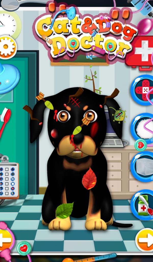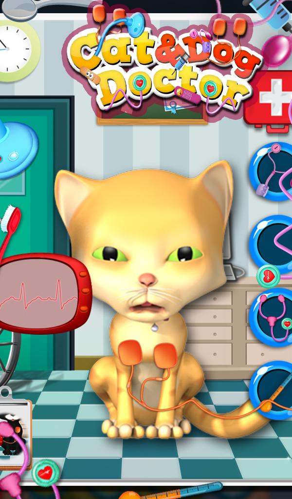 Inside the game did you see that Cat and Dog with painful expression? They are not feeling well due to some pain in their body. You have to behave like a real doctor and help those animal to get relief from pain. First apply basic treatment such as check heartbeat, blood pressure and body temperature. Then you can see there is some problem with his eyes because it's looking radish so treat it by eye drops. Then scan patient's body using x-ray machine, find wrecked bones and cover it with plaster to fix them. Funniest thing is that you can paint plaster by colorful pencil. Make the patients happy by giving proper treatment.