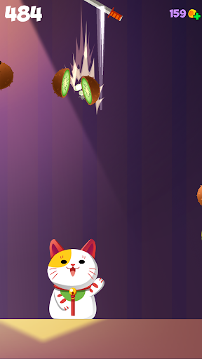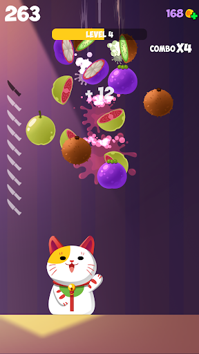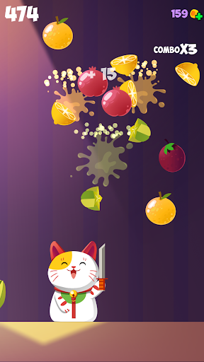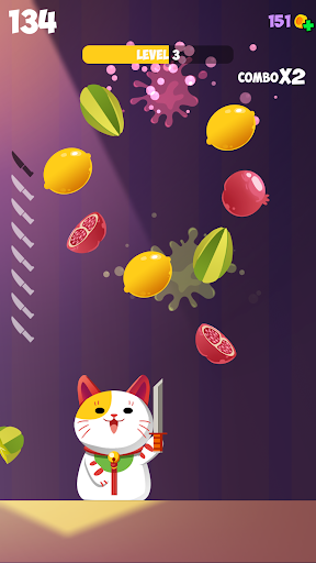 Turn yourself into the cat, help him slash the fruits.
