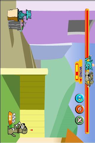 Cat and Dog are fighting in A windy day. They are throwing stuff to each other.