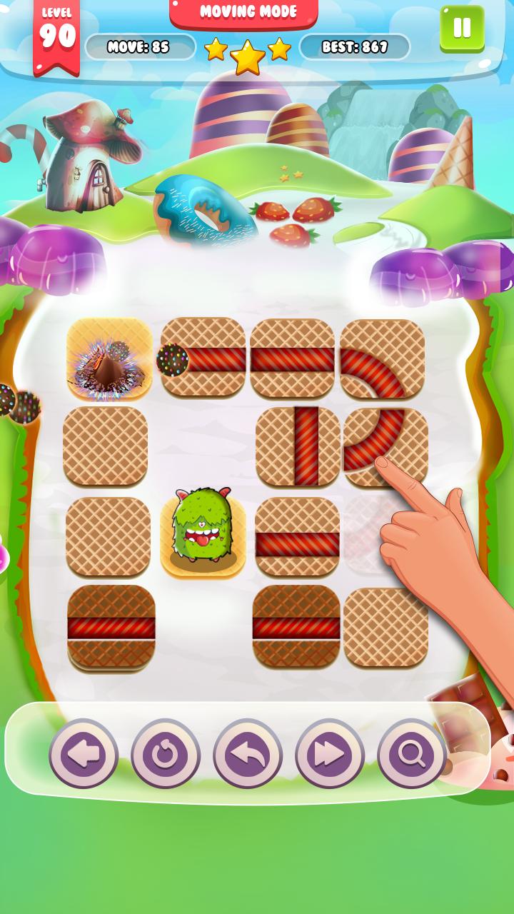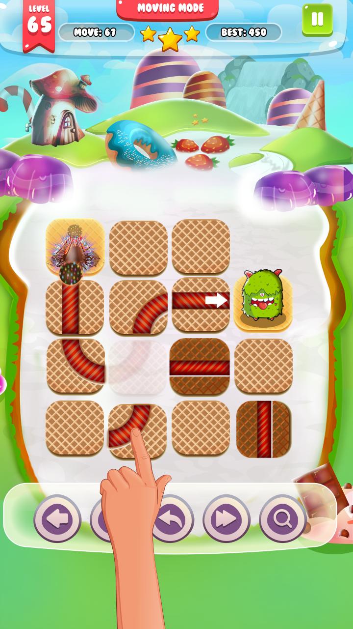 - Move wafer from maze puzzle to catch the candy to the goal.