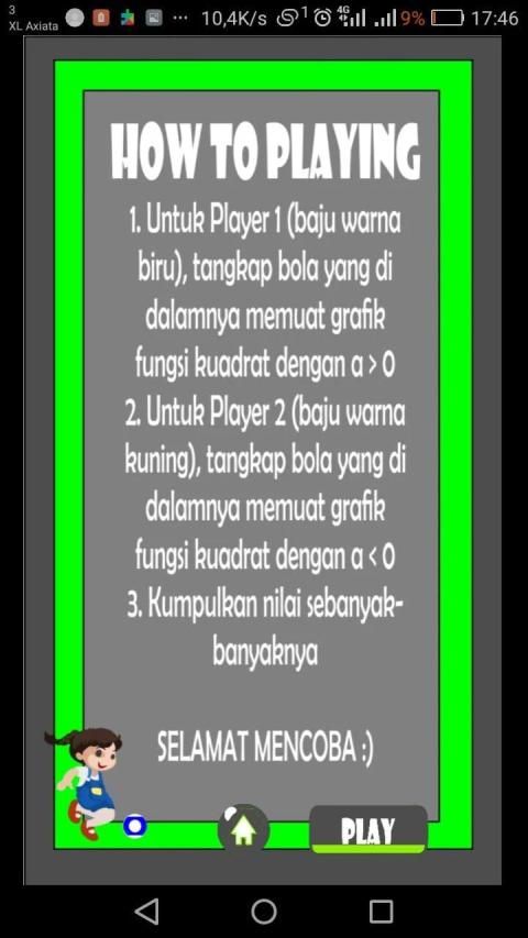 Aplikasi ini merupakan sebuah game yang mengenalkan materi tentang fungsi kuadrat khususnya tentang grafik fungsi kuadrat.