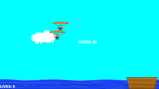 Improve the UI, increase the touch area of soldiers(their parachute should also be clickable), loosing lives in inevitable in the starting because it is impossible for that slow boat to reach other end and the soldiers fall their spees should have been less if the boat is slow. Calibrate their speed to the time period of the boat. The buttons become very wide and out of scale on 18:9 or even 16:9 displays. Optimize the elements according to that.