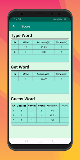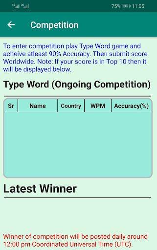 Type Word : Type written words within specified time.