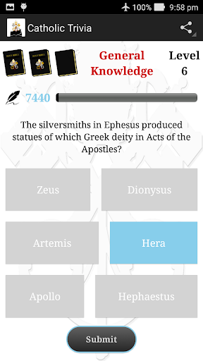 This is a trivia game which tests your knowledge of Sacred Scripture. The more you play, the more you learn about the Bible. The large database of questions provides replayability in addition to the opportunity to employ the knowledge you gain from your mistakes to advance further in the game.