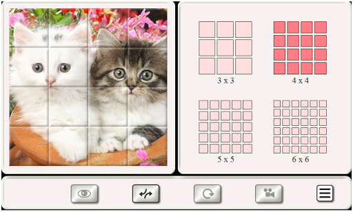 - 4 levels of difficulty - 3x3, 4x4, 5x5, 6x6;